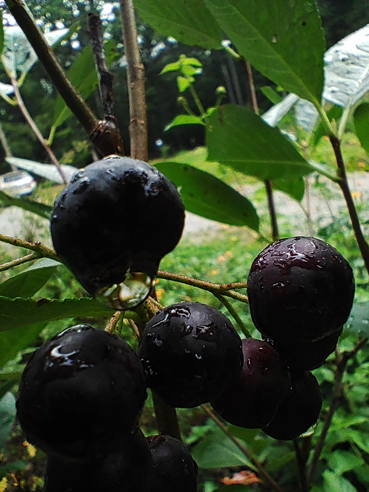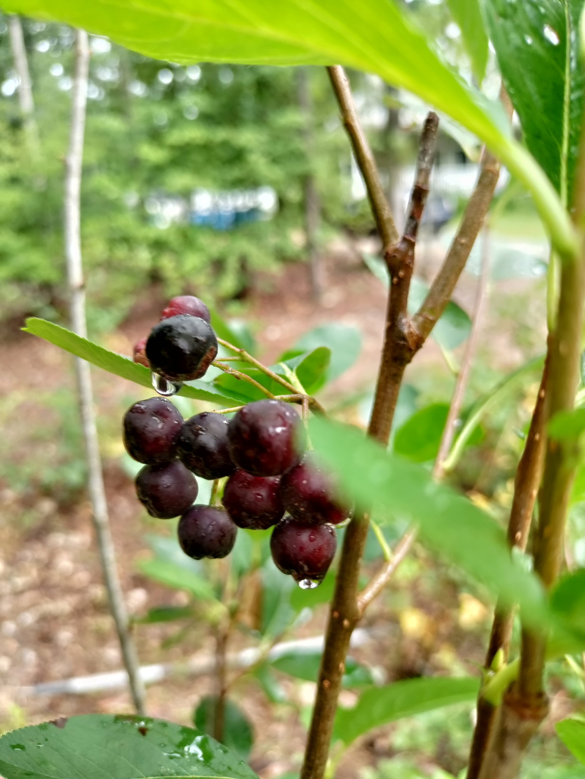 Aronia 'Viking' (Aronia melanocarpa) or black chokeberry is a cold-hardy native perennial that produces clusters of small black tart fruit. The fruit can be used in jams, jellies, wine as well as medicinal uses, as they are high in antioxidants. The plant form is bushy, and makes a nice hedge plant. Also called: Photinia melanocarpa, Pyrus melanopcarpa, Sorbus melanocarpa