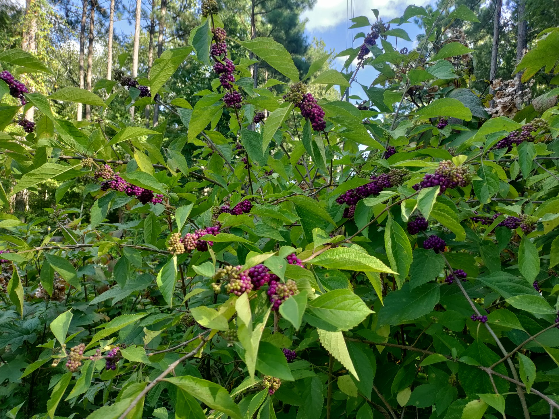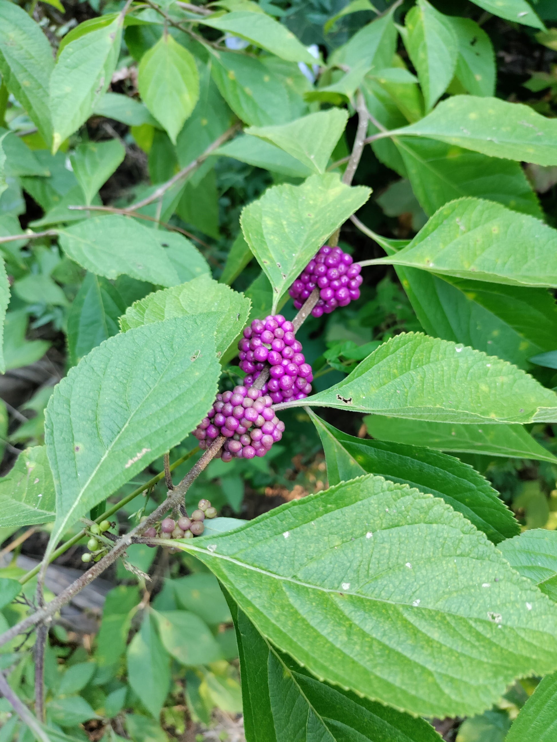 Native to the southeastern U.S., American beautyberry ( Callicarpa americana )is a hardy perennial that really shows off with its bright purple berries in late summer and early autumn. This bushy plant enjoys partial sun and moderately moist soil and will thrive in the same growing conditions as hydrangea. Native pollinators enjoy the relatively inconspicuous flowers, but bright purple clusters of purple fruit that emerge are hard to miss. If ordering during the winter, plants will be dormant and leaf-less. Also called: French Mulberry, American Mulberry, Sour-bush
