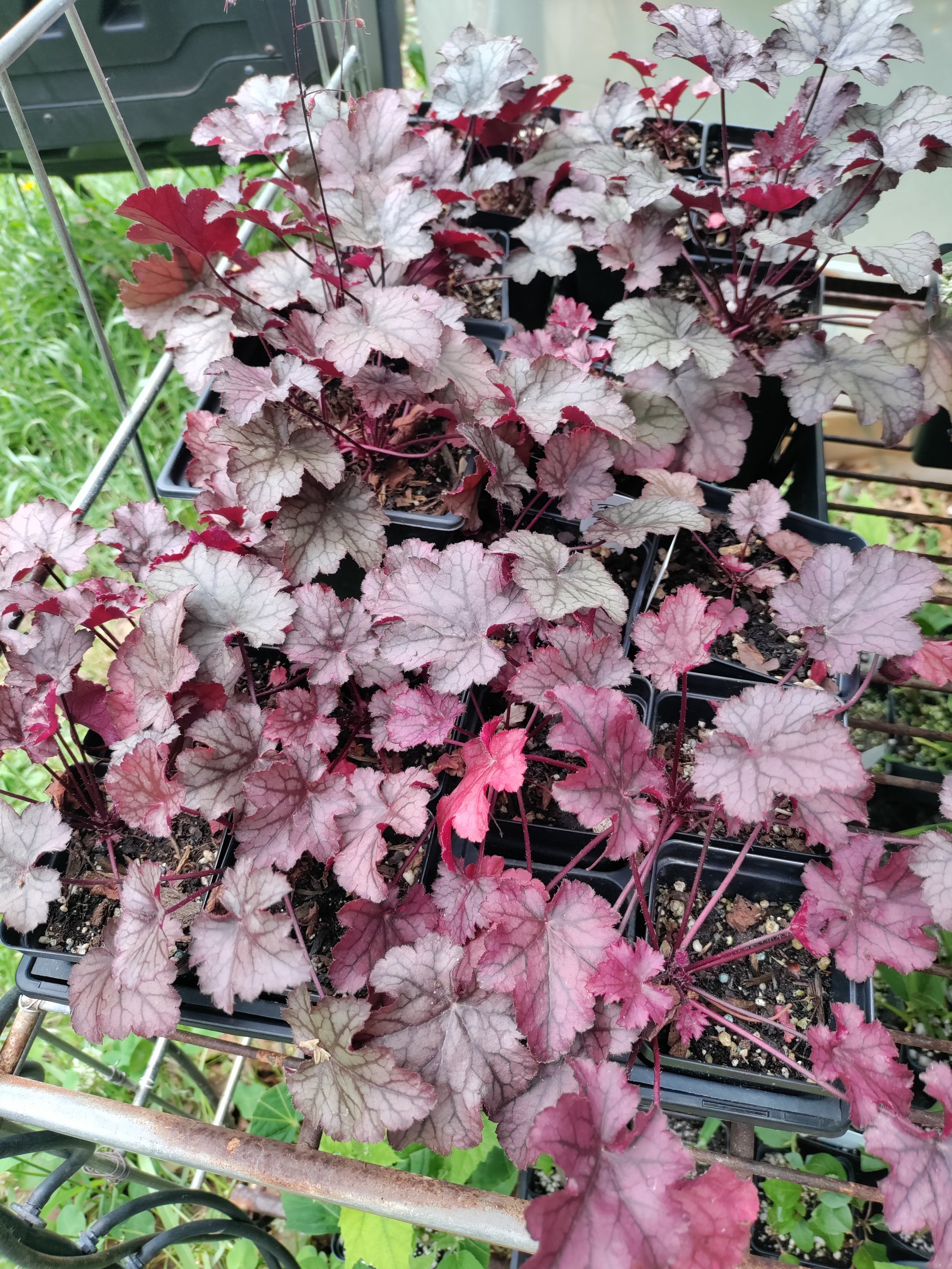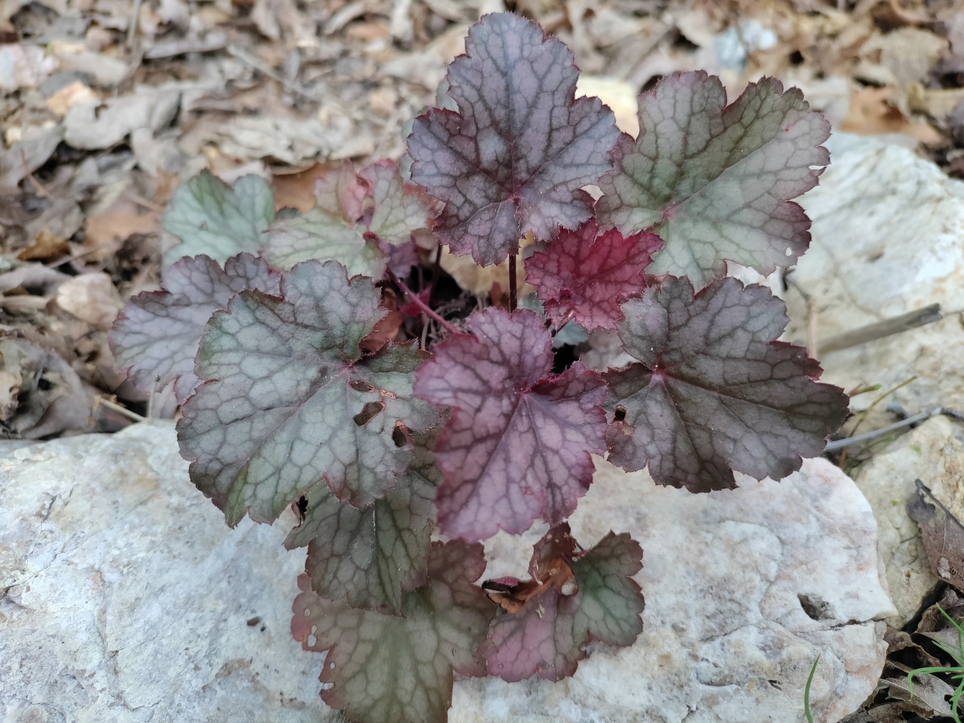 Heuchera, or coral bells, is a clump-forming perennial that is a garden All-Star for colored foliage. 'Amethyst Myst' has reddish-purple leaves that really contrast in a green-leaved flower bed or rock garden, or border. Delicate sprays of white-pink flowers bloom in the spring and early summer. It prefers partial shade, is quite cold-tolerant, and is deer and rabbit-resistant. Also called: Alumroot, Oreanthus