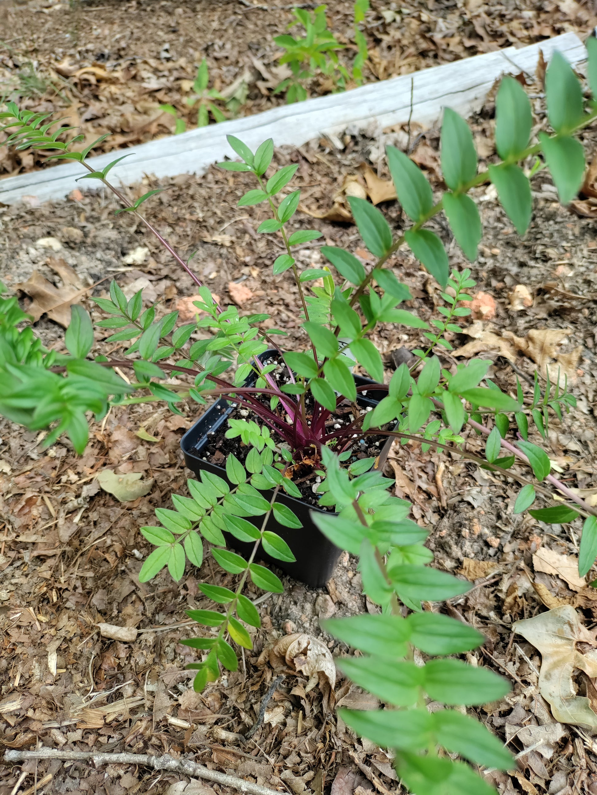 Polemonium, or Jacob's Ladder, is a hardy mounding perennial grown for it's attractive ferny foliage and purple flowers that bloom on tall stalks in spring. Grown best in partial sun, it prefers constantly moist soil, and does not like hot dry locations. Although, if it's grown in a location with enough sun, the leaves take on a dark tinge, which is nice.